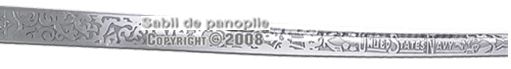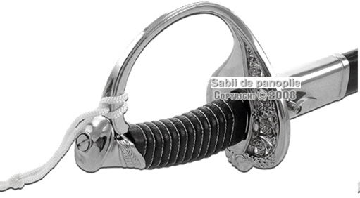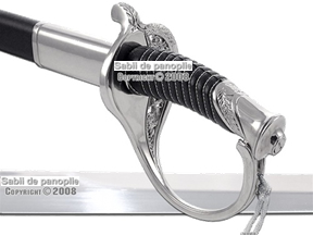 Manerul sabiei este invelit in imitatie de piele si fir argintiu.