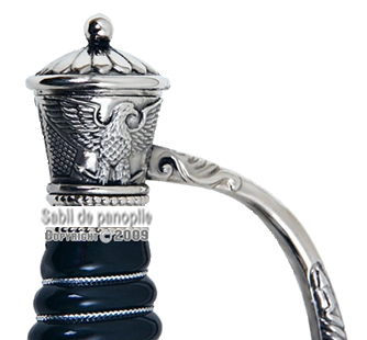 Garda: are atasata o emblema aurita cu un vultur gravat in relief pe centrul ei si, opus ei, o cruce malteza.