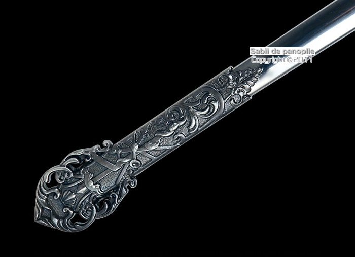Garda: are atasata o emblema aurita cu o cruce rosie gravata in relief pe centrul ei si, opus ei, o cruce simpla.