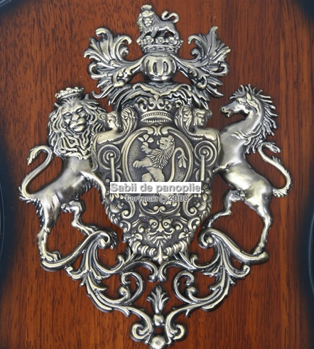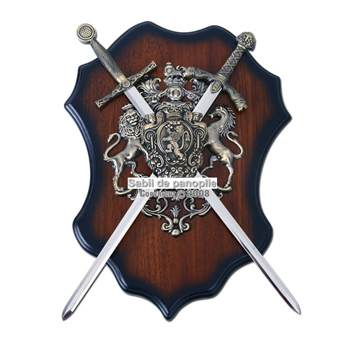 Placa este din lemn, si are pe aceasta un model din fier ce reprezinta un leu si un unicorn. In spatele acestui model sunt asezate sabiile Excalibur si sabia lui Roland in miniatura. Acestea pot fi scoase din suport. Panoplia vine cu un sistem de agatat pe perete.